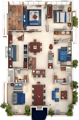 The bedroom is a private retreat—a calm, restful zone meant to restore both body and mind. Typically furnished with a bed, nightstands, and soft lighting, it invites tranquility and a sense of personal comfort.